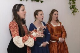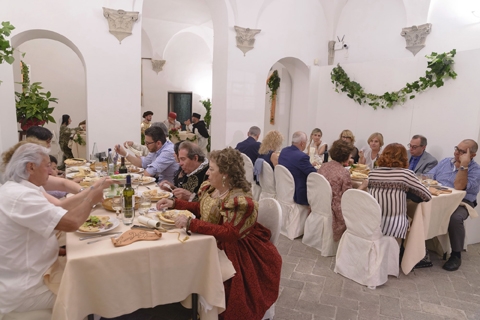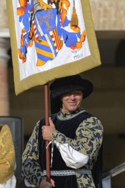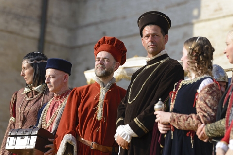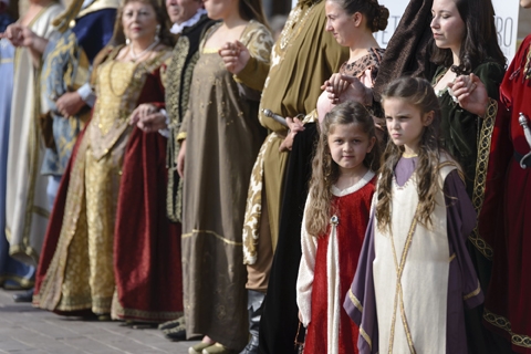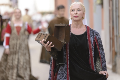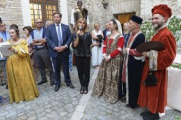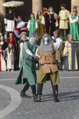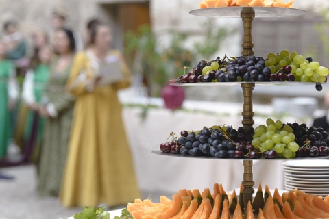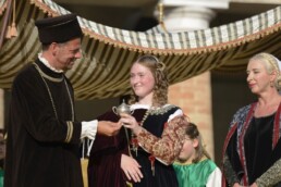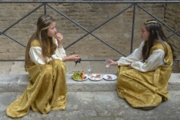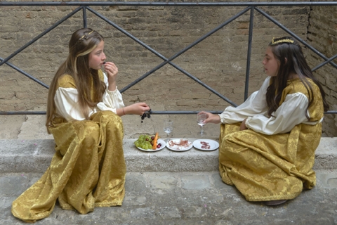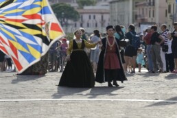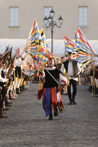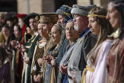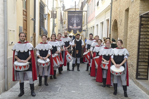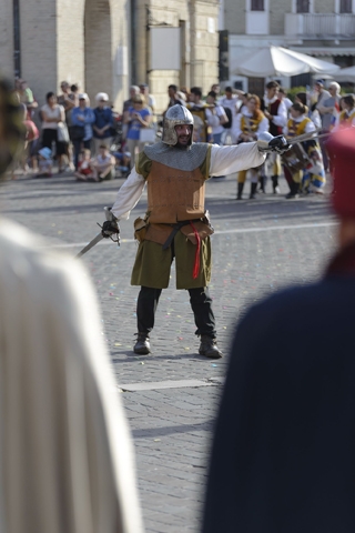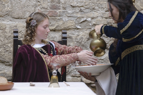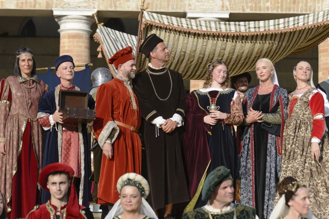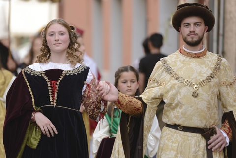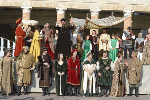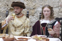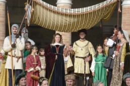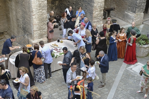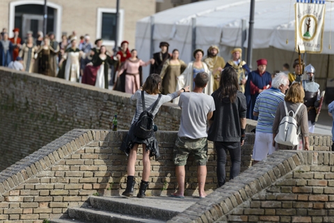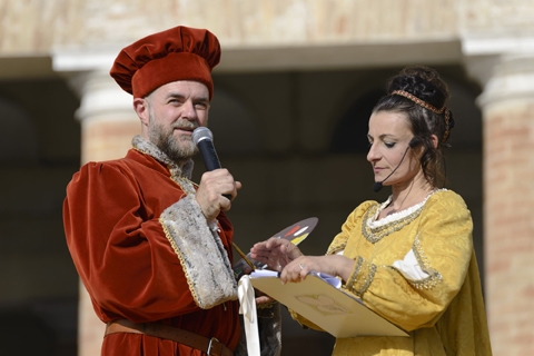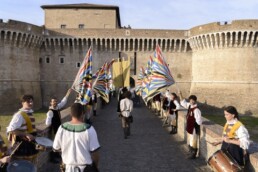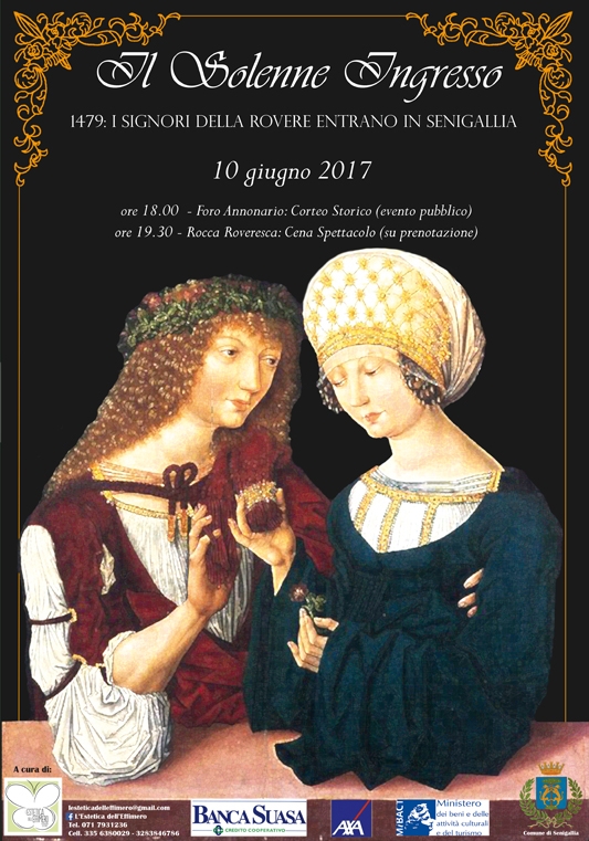 Il corteo ha attraversato poi il centro storico fino ad arrivare alla Rocca Roveresca, all’interno della quale si è svolta la seconda parte della serata. Alle ore 19,30, infatti, con l’ingresso della Corte e il servizio di Credenza nel cortile interno, è stato riproposto il rito rinascimentale della imbanditura della tavola. Allietato da musiche di due flautisti del conservatorio di Pesaro, Arsienti di Re e Camilla Piardi. L’intera manifestazione, patrocinata dal Comune di Senigallia e su concessione del ministero dei Beni e delle Attività Culturali e del Turismo – Polo Museale delle Marche-Urbino, è stata condotta dall’attrice Giorgia Penzo dell’associazione Città Teatro di Riccione.