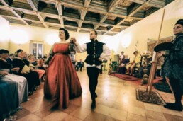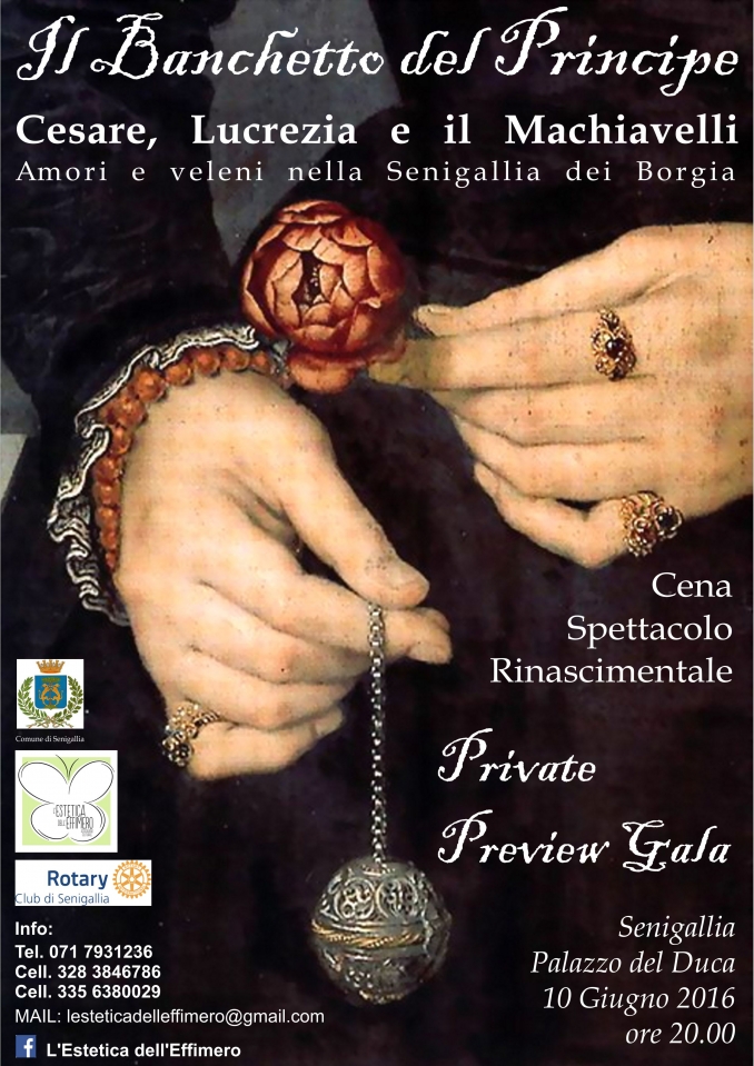 “L’Estetica dell’Effimero”, Associazione Culturale senza scopo di lucro nata dalla passione dei fratelli Anna e Lorenzo Marconi e della loro affezionata cerchia di amici e collaboratori, appena nata ha saputo coinvolgere importanti realtà locali nel realizzare un evento speciale che per una notte ha fatto vivere ai partecipanti (sold out in pochi giorni) le atmosfere sfarzose e intriganti del turbolento Rinascimento cittadino.